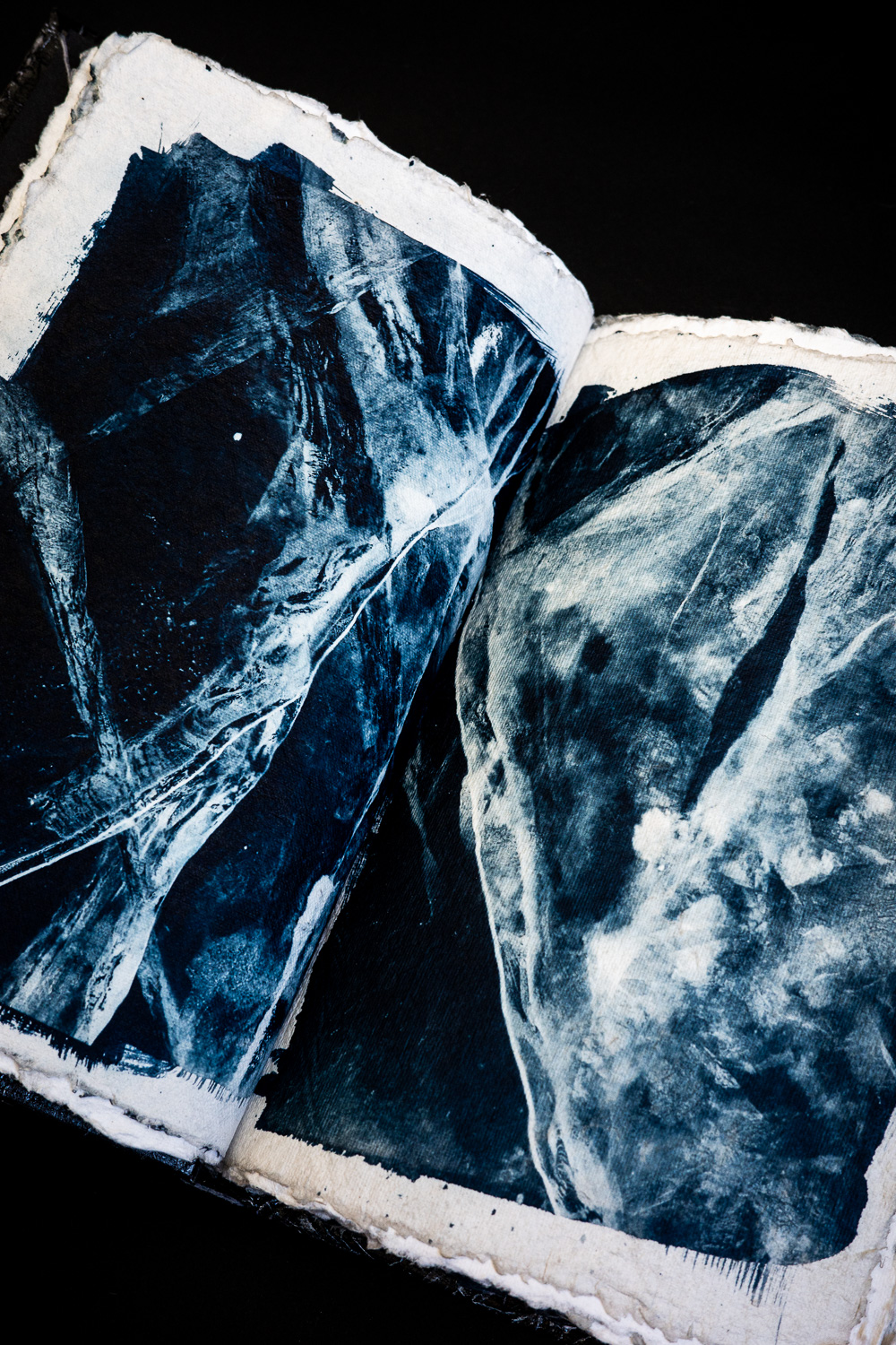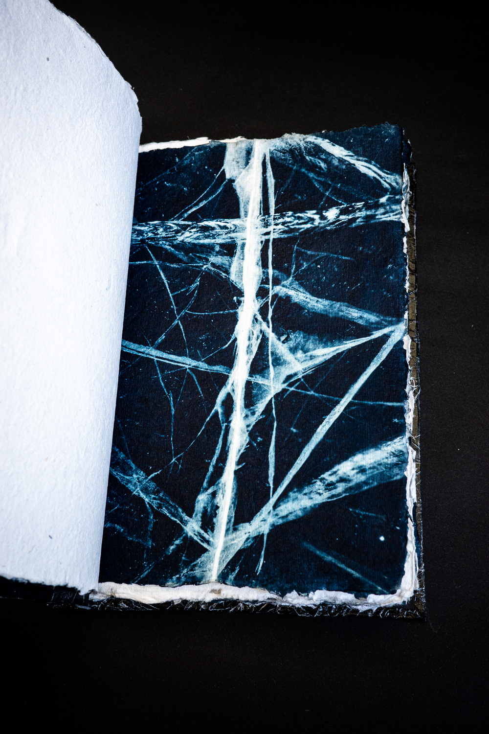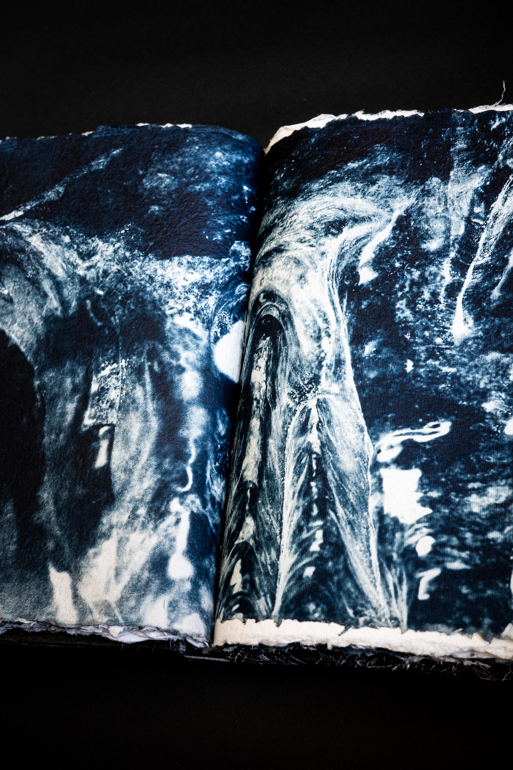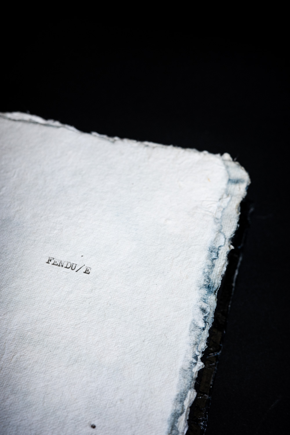 FENDU/E Artist's Book Unique photographic book. It contains a corpus of 21 typewritten poems and 22 original toned cyanotypes. Custom Slipcase. Edition of 7 + 2 artist's proof