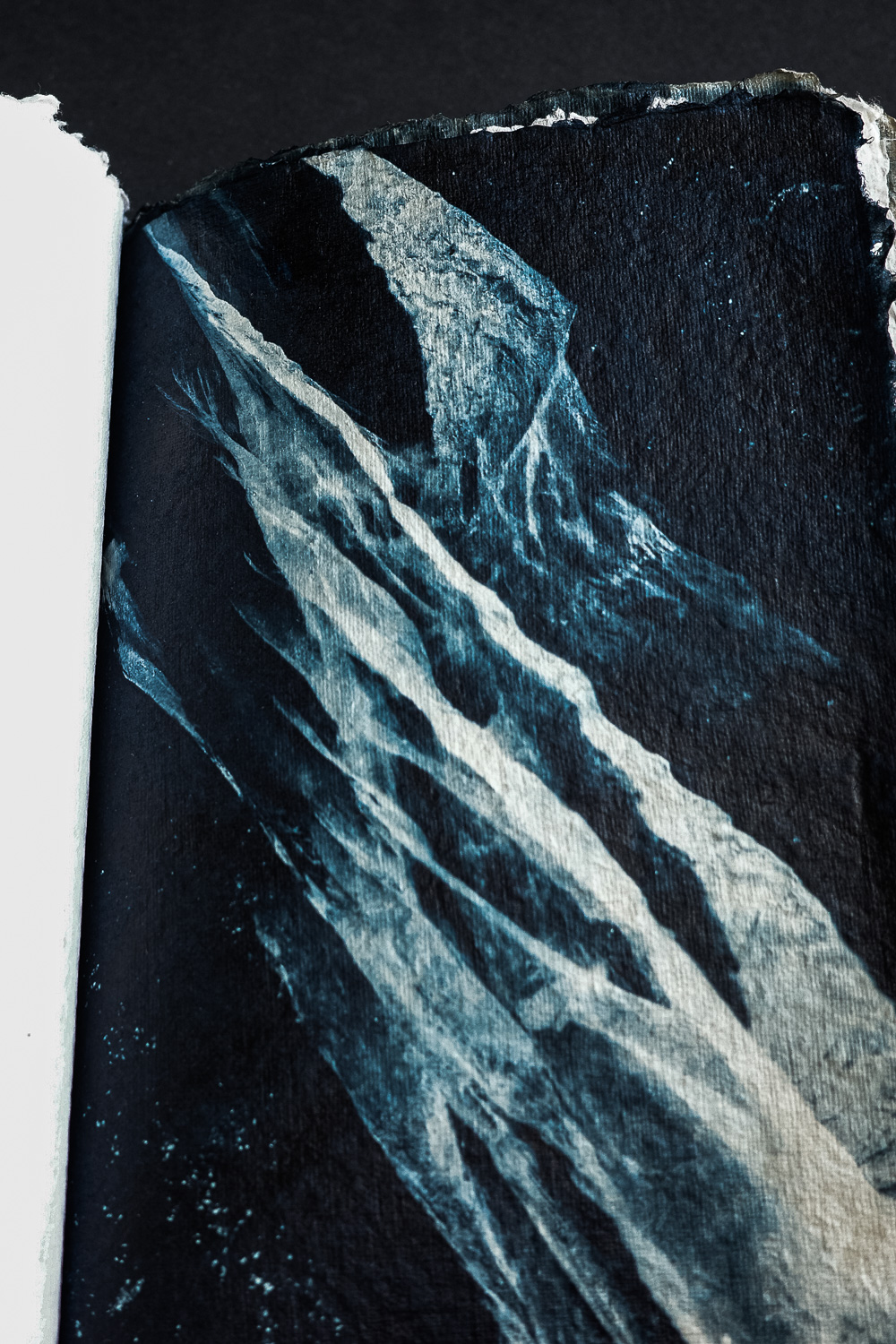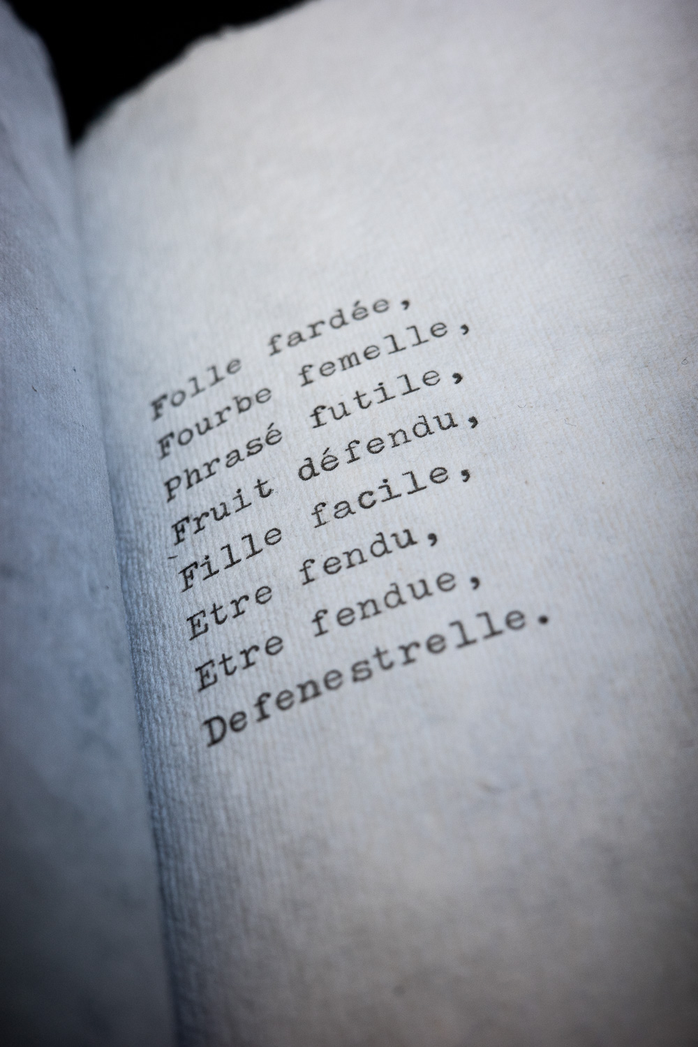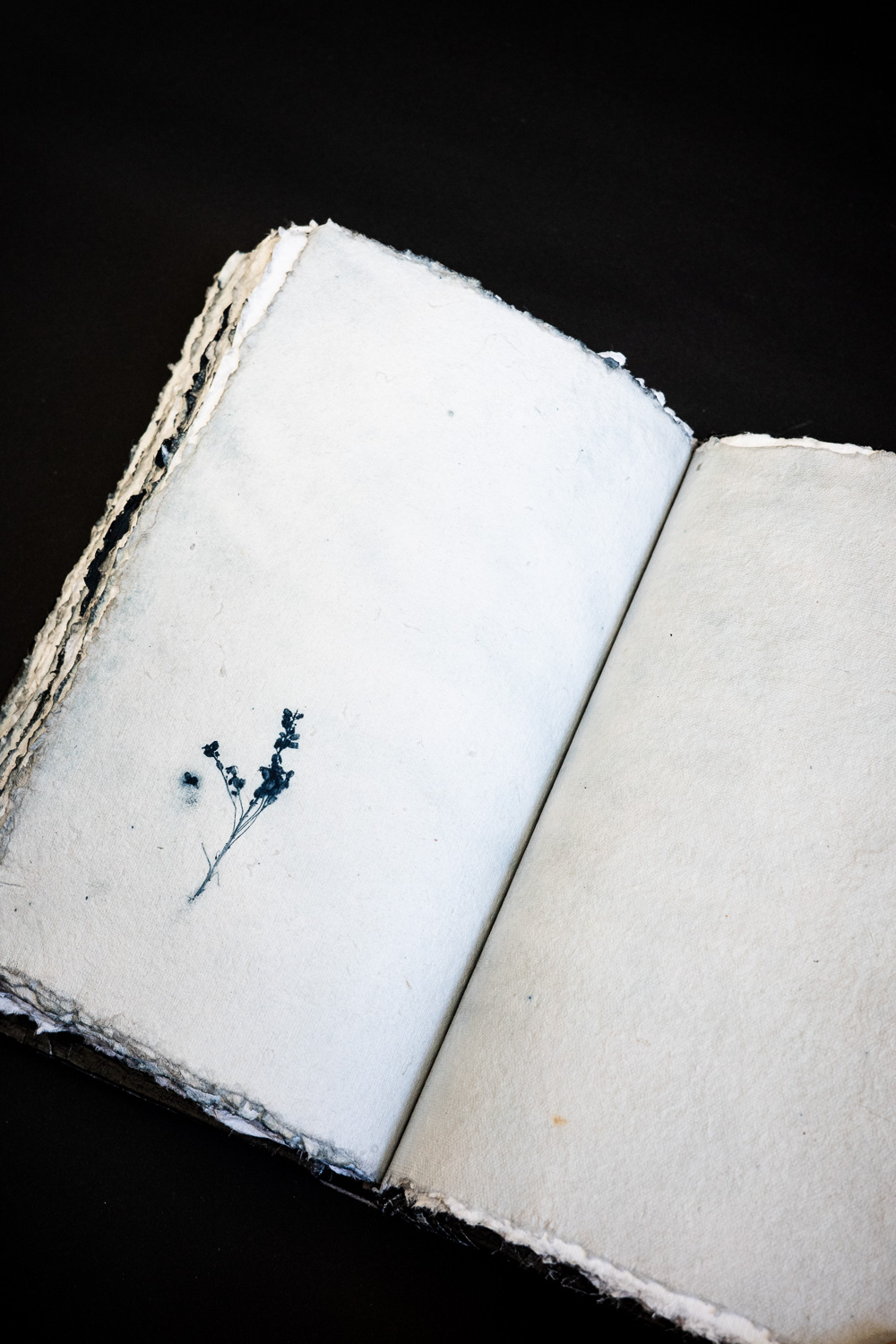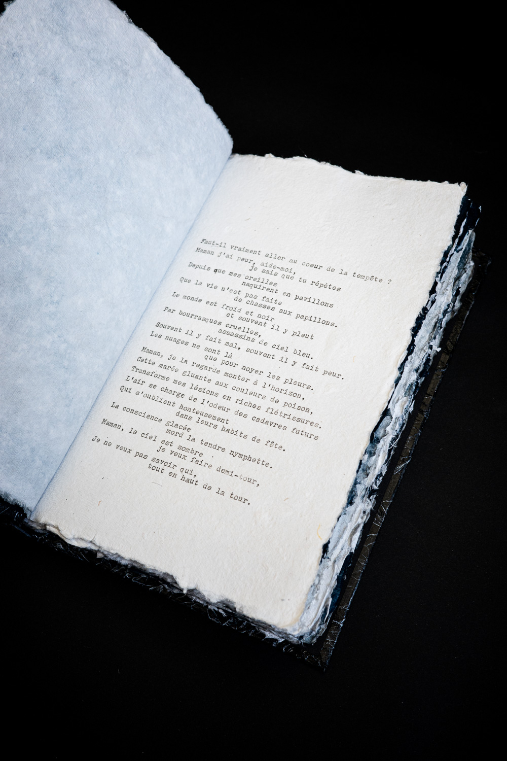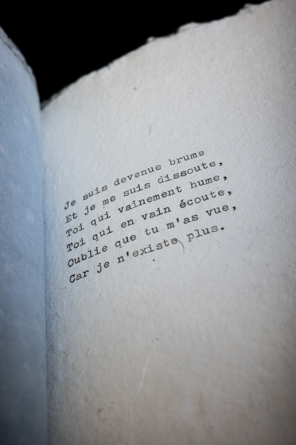 FENDU/E Artist's Book Unique photographic book. It contains a corpus of 21 typewritten poems and 22 original toned cyanotypes. Custom Slipcase. Edition of 7 + 2 artist's proof